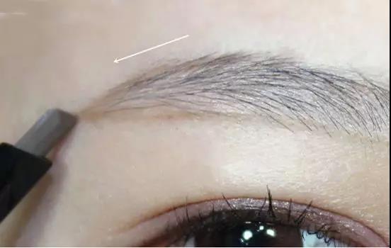 開始填色,按箭頭方向填填眉尾,眉頭靠下的部分也可以按著毛流填一下。