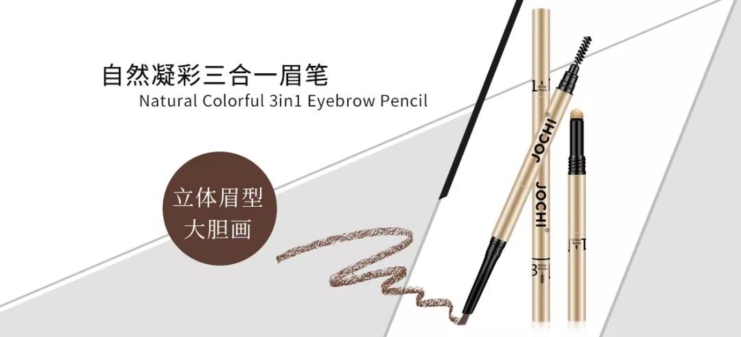所以這時候就需要九極自然凝彩三合一眉筆啦,防水防油、易上色、持久不脫妝,是打造自然妝容的利器!